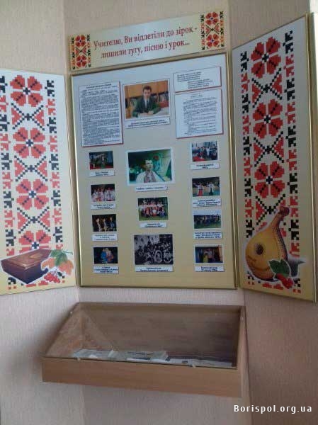 Великий розділ у музеї присвячений талановитому педагогові та організатору, заступнику з виховної роботи Анатолію Григоровичу Левчуку, який працював у школі з 1988 по 1999 рік. Також окремі композиції відведені кращим учням, спортивним досягненням школярів та односельцям – учасникам АТО на сході країни.